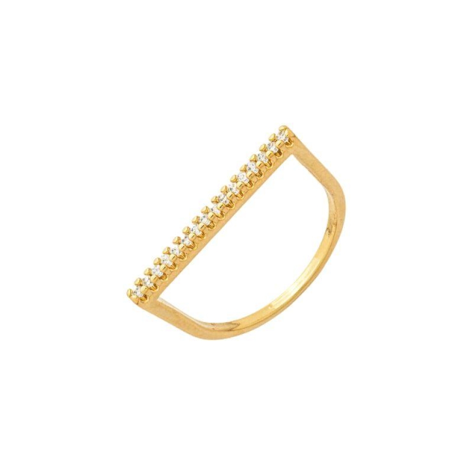 Anel Barra Reta Zircônias Ouro