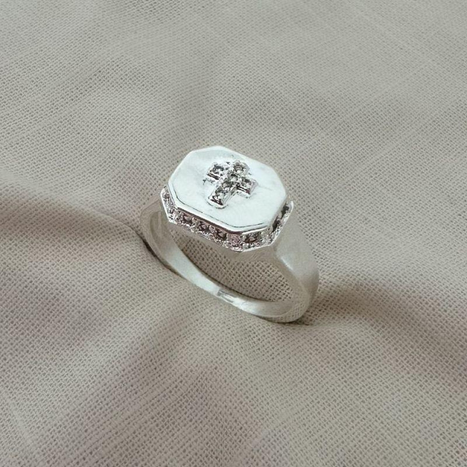 Anel Chapa Cruz Cravejada Prata