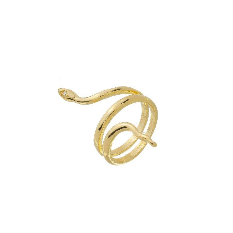 Elegante e ousado, este anel banhado a ouro envolve o dedo em três voltas sinuosas, criando o efeito marcante de uma cobra. Detalhes texturizados realçam o realismo da peça, enquanto o design regulável garante conforto e ajuste perfeito. Um acessório que transmite força, estilo e personalidade.