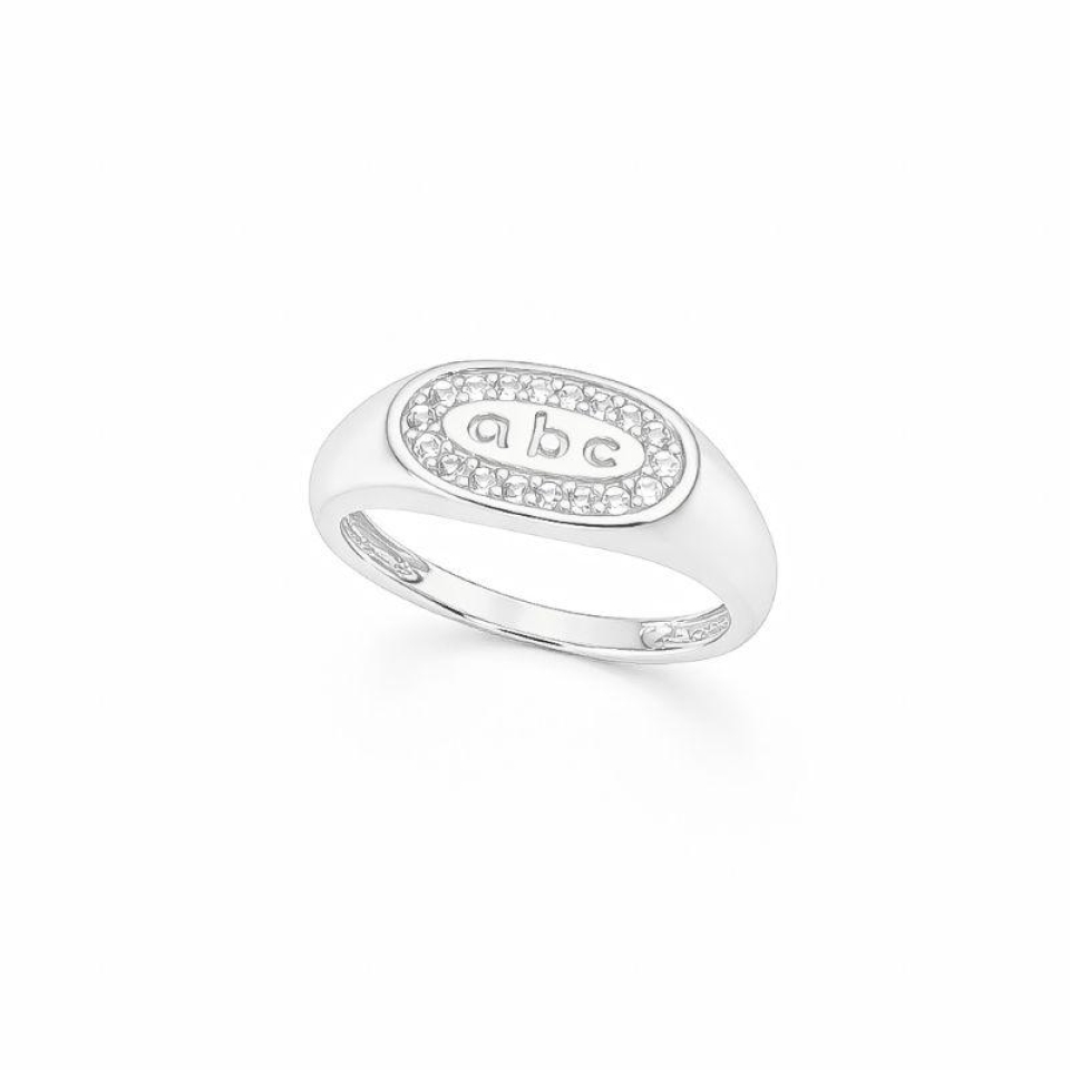 O Anel Dedinho ABC Prata apresenta um design marcante e moderno, com aro liso e estrutura levemente robusta, ideal para uso no dedo mínimo. O destaque fica para a parte superior oval, com a inscrição “abc” em alto-relevo, contornada por zircônias delicadamente cravejadas, que adicionam brilho elegante à peça. Seu acabamento em banho de prata confere sofisticação e visual refinado. Estiloso e cheio de personalidade, é perfeito para compor produções atuais ou criar combinações modernas com outros anéis.
