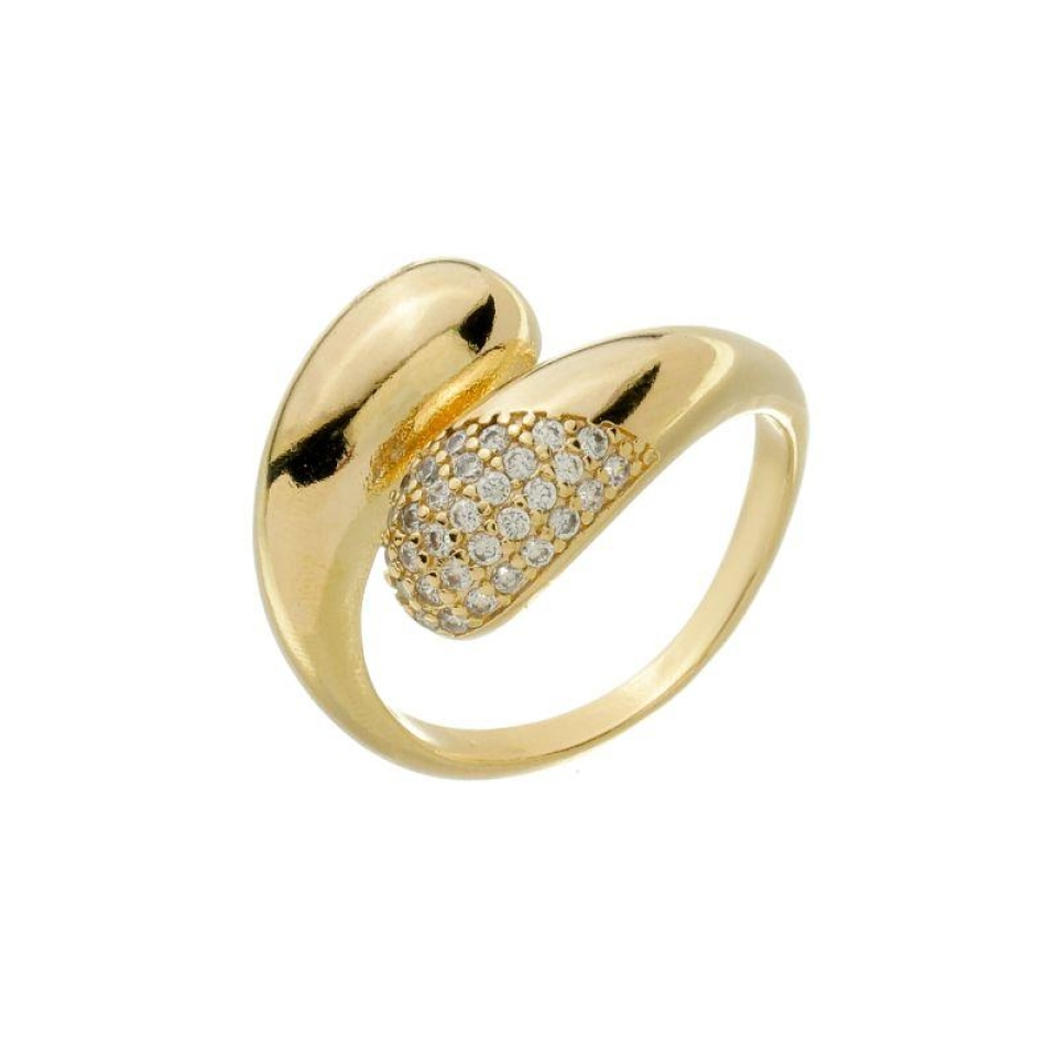 Anel Duas Gotas Zircônias Ajustável Ouro