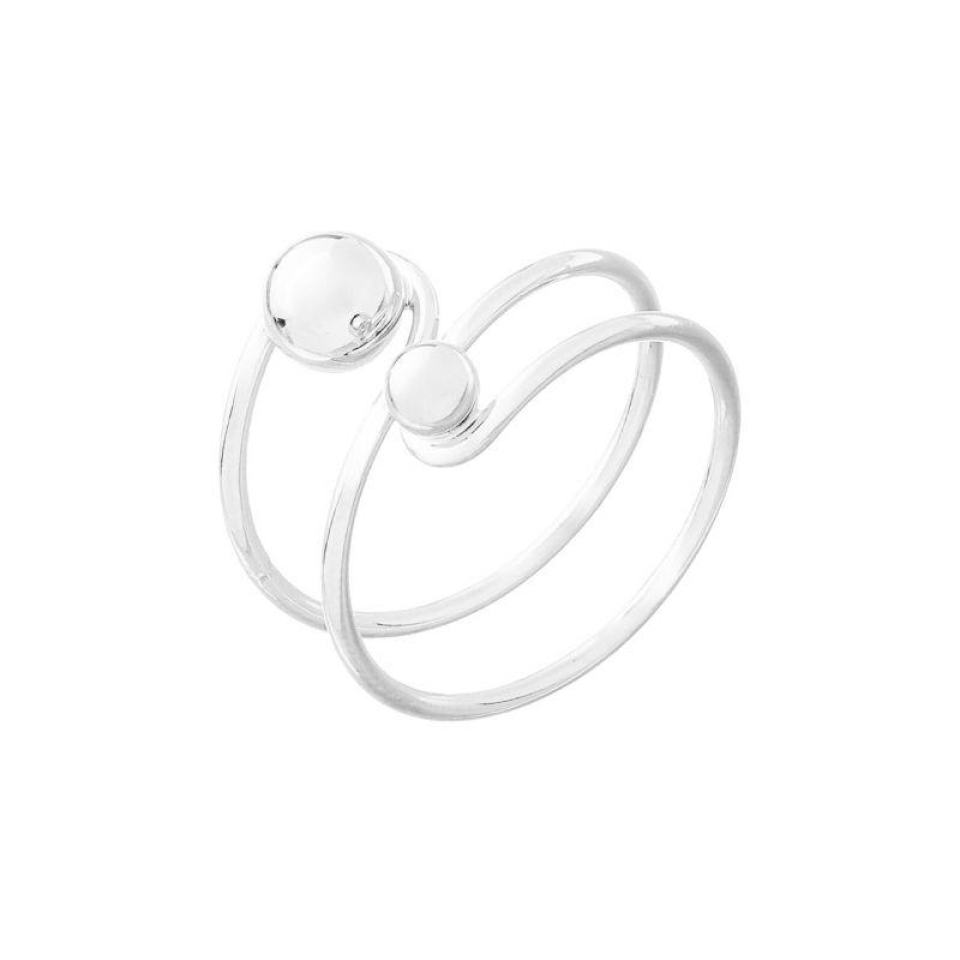 O Anel Esferas Invertidas Ajustável Prata é uma semijóia de design moderno e minimalista, com duas esferas posicionadas nas extremidades de uma estrutura aberta. O formato ajustável proporciona encaixe confortável, adaptando-se perfeitamente ao dedo. Banhado em prata de alta qualidade, é ideal para composições elegantes e atuais, trazendo um toque de sofisticação discreta ao visual.