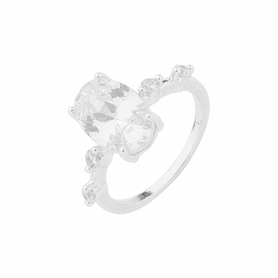 Anel Pedra Oval Prata