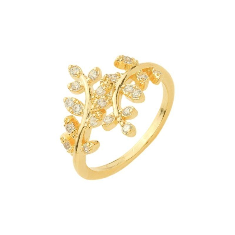 Anel Ramo de Zircônias Ouro