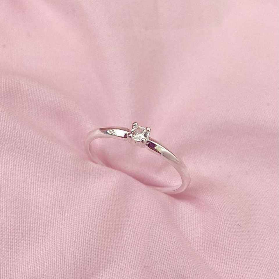 Anel Solitário Clássico Brilho Prata