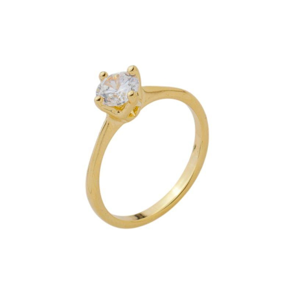 Anel Solitário Zircônia Central Ouro