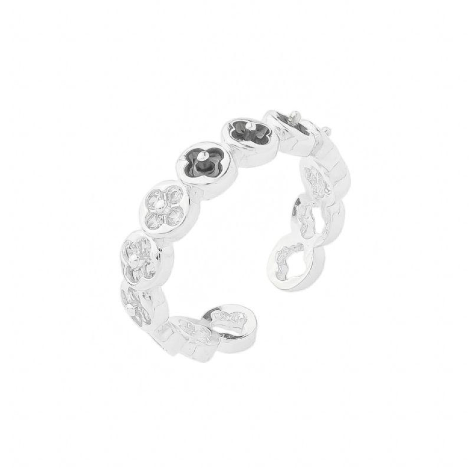 Anel Trevo Cravejado Ajustável Prata