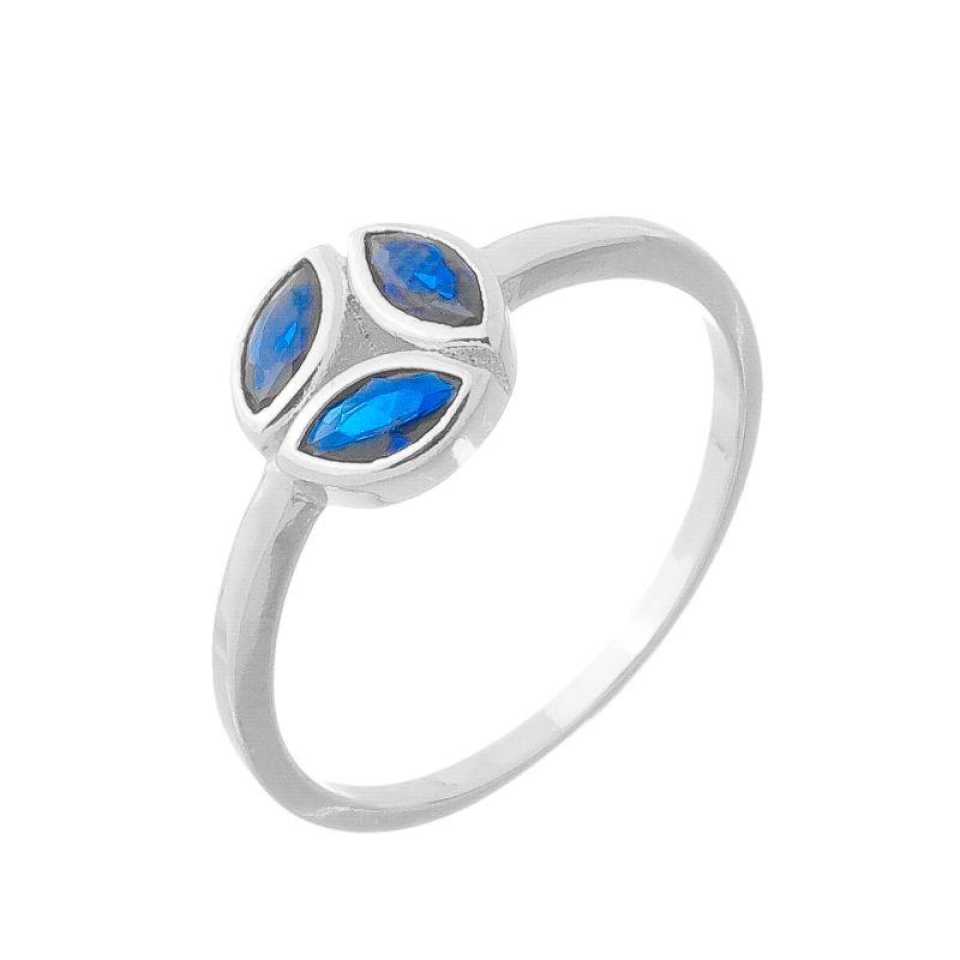Anel Trio Pétalas Azuis Prata