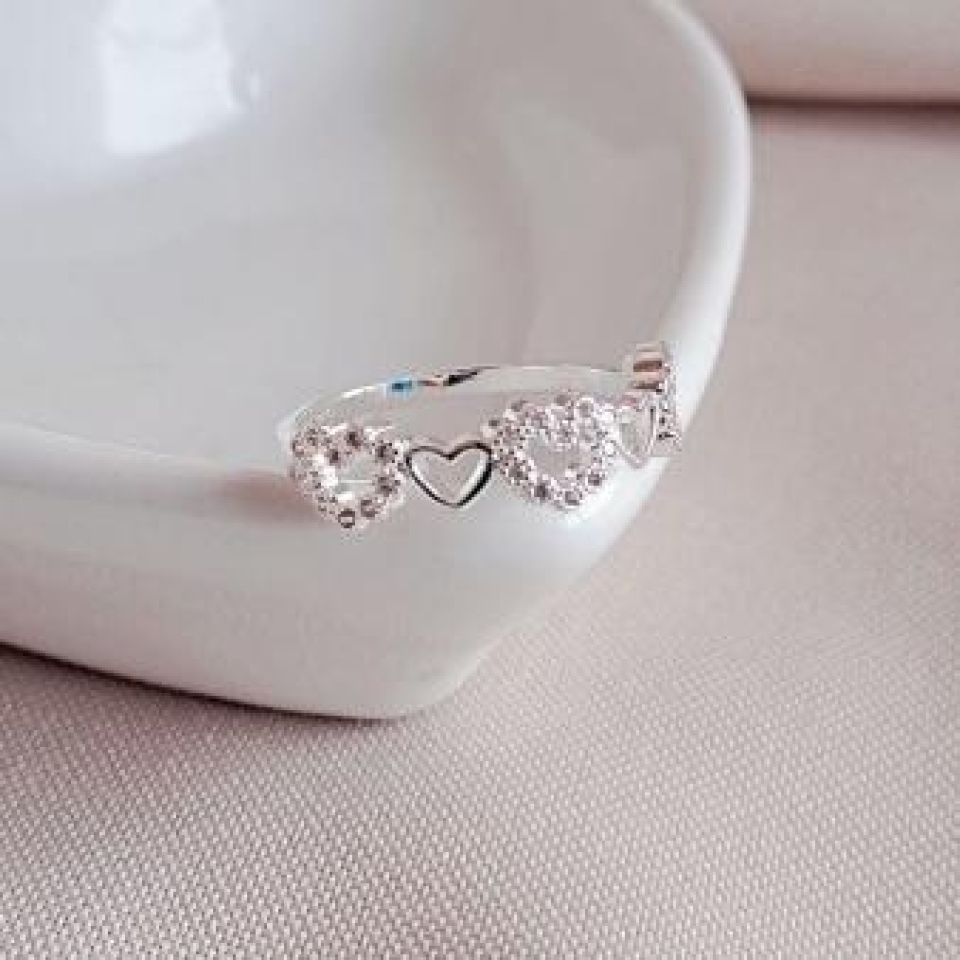 Anel União Corações Zirconias Prata