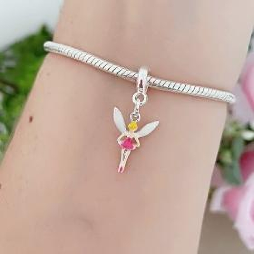 Delicado e encantador, esse berloque em banho de prata traz o formato de uma fadinha, simbolizando magia, sonhos e fantasia. Uma peça charmosa para pulseiras e colares, perfeita para quem deseja adicionar um toque lúdico e especial aos seus acessórios.