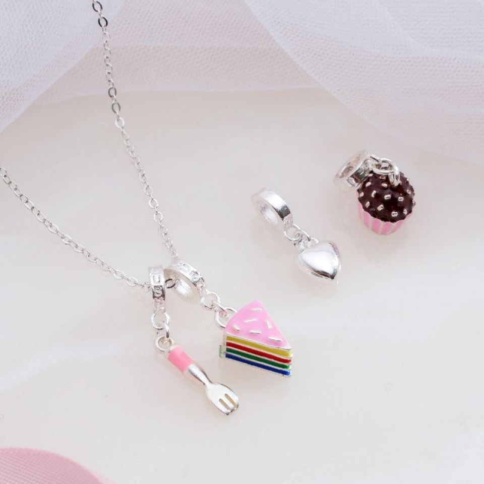 Berloque Garfo Rosa Prata Plush