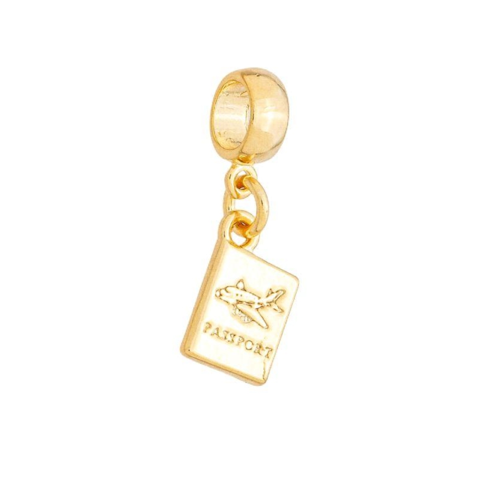 O Berloque Passaporte Viagem Ouro é ideal para quem ama viajar e colecionar momentos especiais pelo mundo. Com design detalhado inspirado em passaportes, simboliza aventura, liberdade e a paixão por explorar novos destinos. O banho dourado oferece brilho sofisticado e duradouro, tornando-o perfeito para personalizar sua pulseira ou presentear alguém que adora viajar.