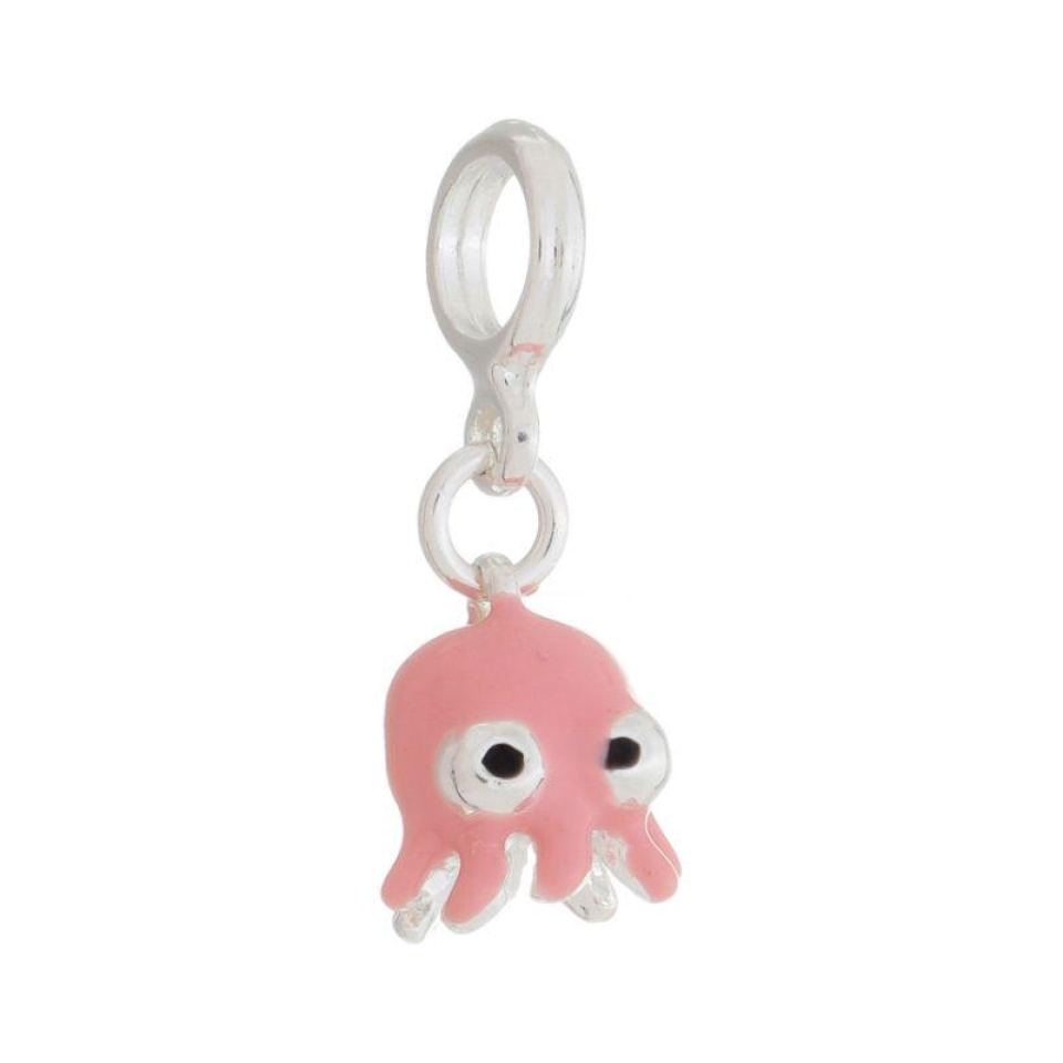 Delicado e cheio de personalidade, esse berloque em banho de prata traz o formato de um polvo com detalhes em rosa, destacando sua originalidade e charme. Perfeito para pulseiras e colares, adiciona cor, estilo e criatividade aos seus acessórios.