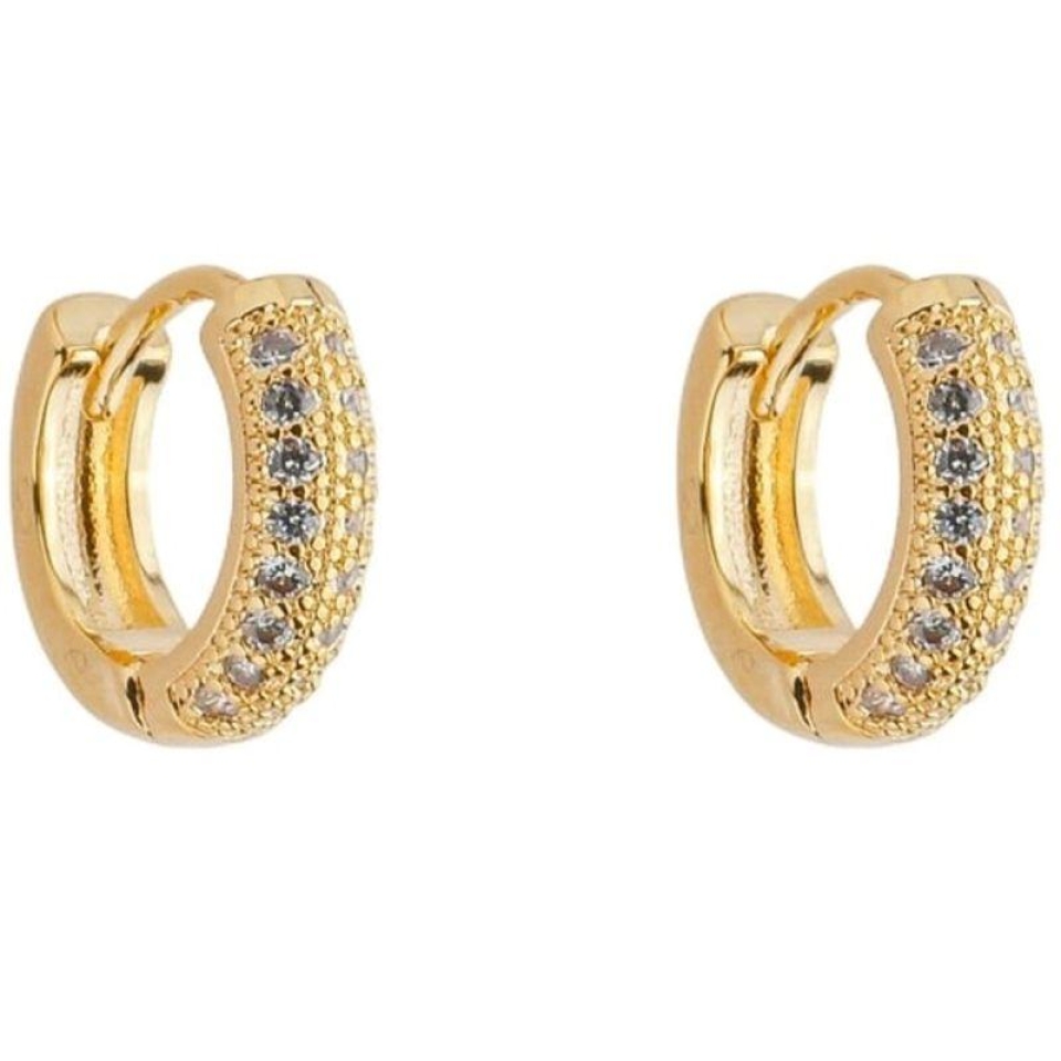 Brinco Argola Dupla Fileira Zircônias M Ouro