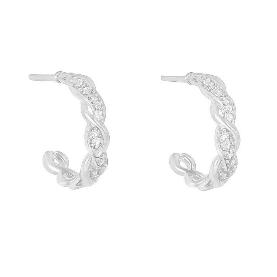 Brinco Argola Trançado Zircônias Prata