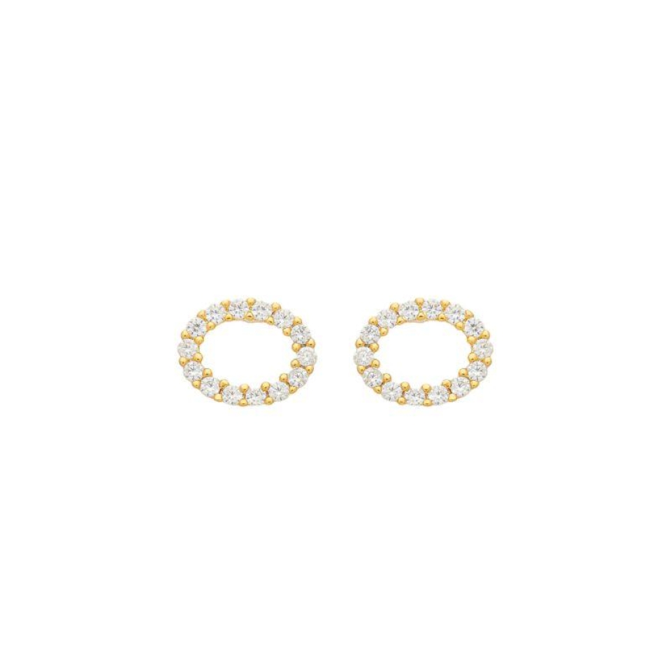 Brinco Círculo Oval Cravejado Ouro