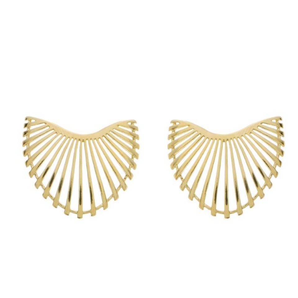 Com design aberto em leque, o Brinco Feixe de Luz no banho ouro é uma peça marcante e cheia de personalidade. Seu formato estruturado e estático lembra feixes de luz irradiando suavemente, criando um efeito visual moderno e elegante. Ideal para quem busca um brinco diferente, mas fácil de combinar no dia a dia.