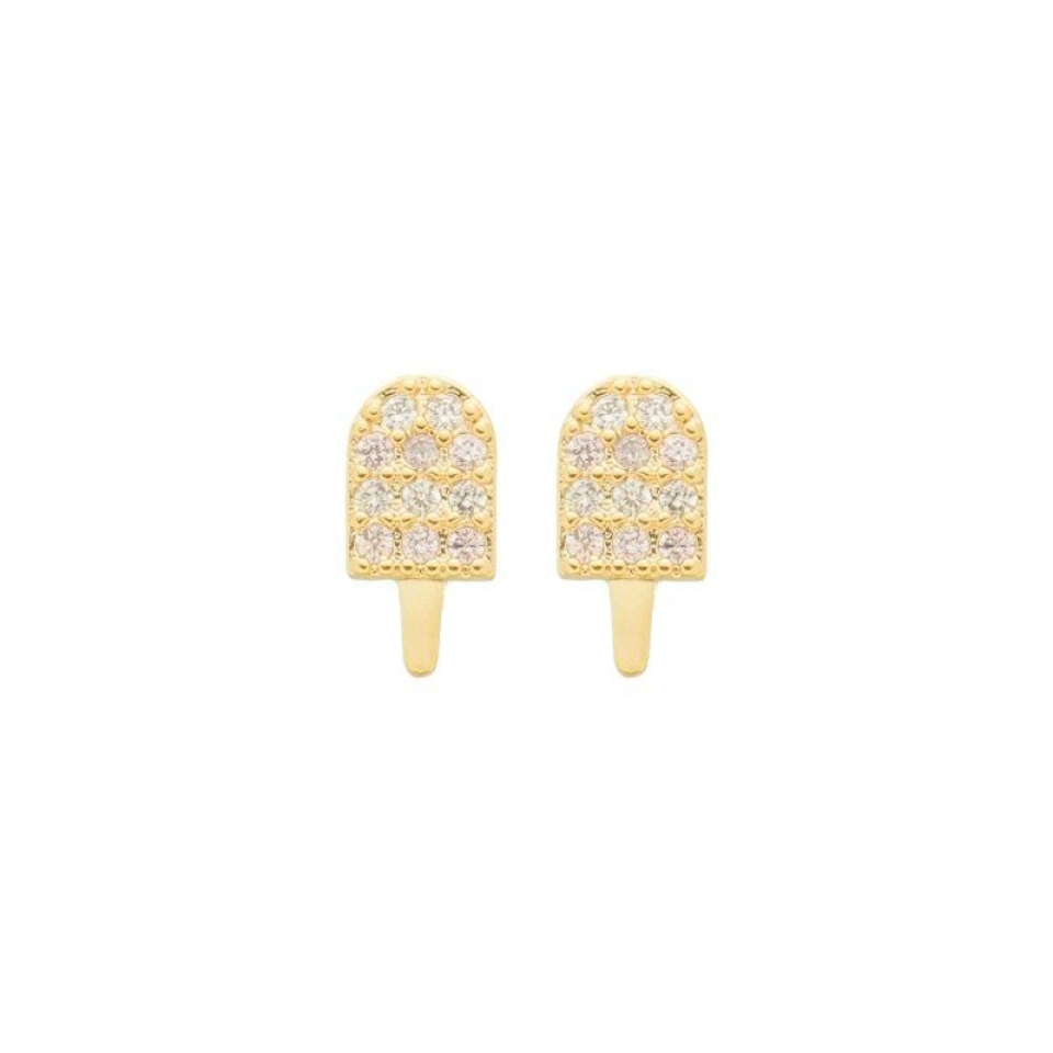 Brinco Infantil Picolé Cravejado Ouro