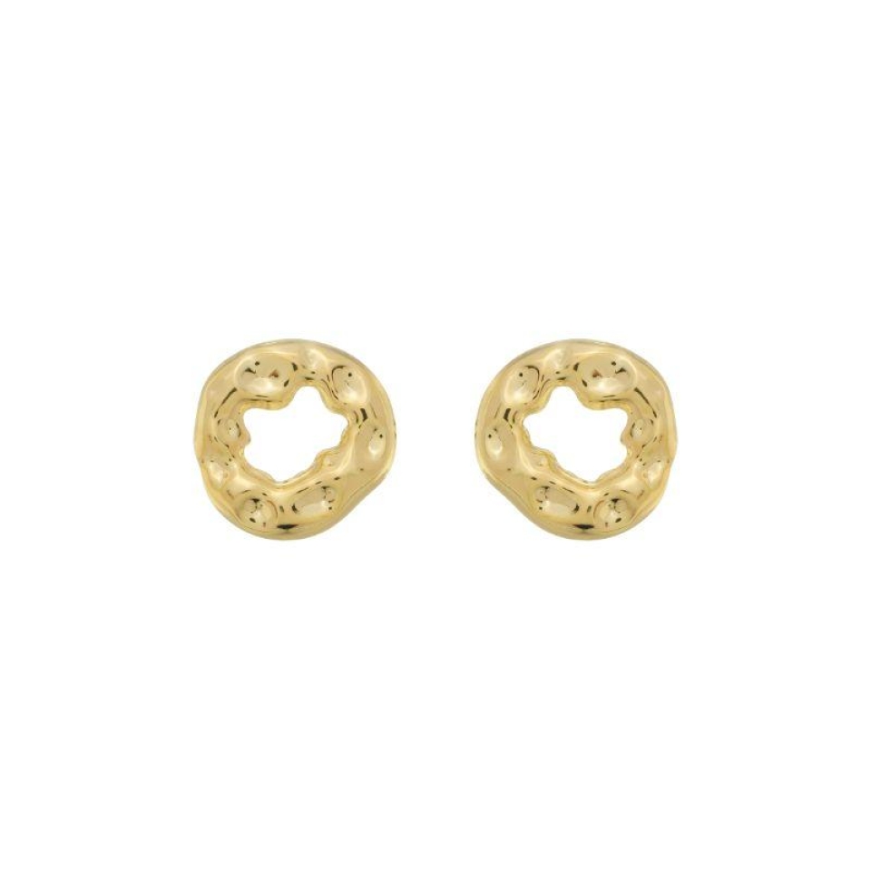 Com formas arredondadas e irregulares, esse brinco traz um visual moderno com acabamento polido em banho ouro. A combinação perfeita entre sofisticação e um toque artístico, ideal para quem ama acessórios com personalidade.