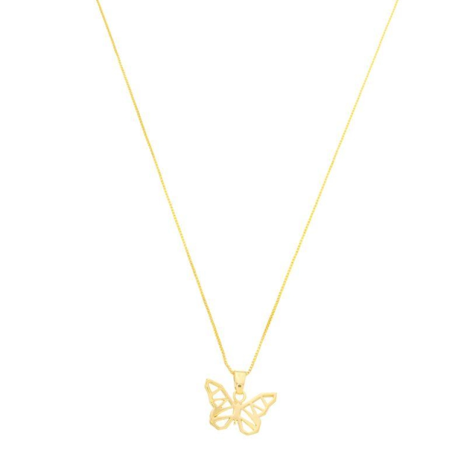 Moderno e delicado, o Colar Borboleta Geométrica Ouro traz o símbolo da transformação em um design minimalista e cheio de estilo. Com linhas geométricas que destacam a leveza da borboleta, é a peça ideal para quem busca um acessório versátil, elegante e cheio de significado para o dia a dia.