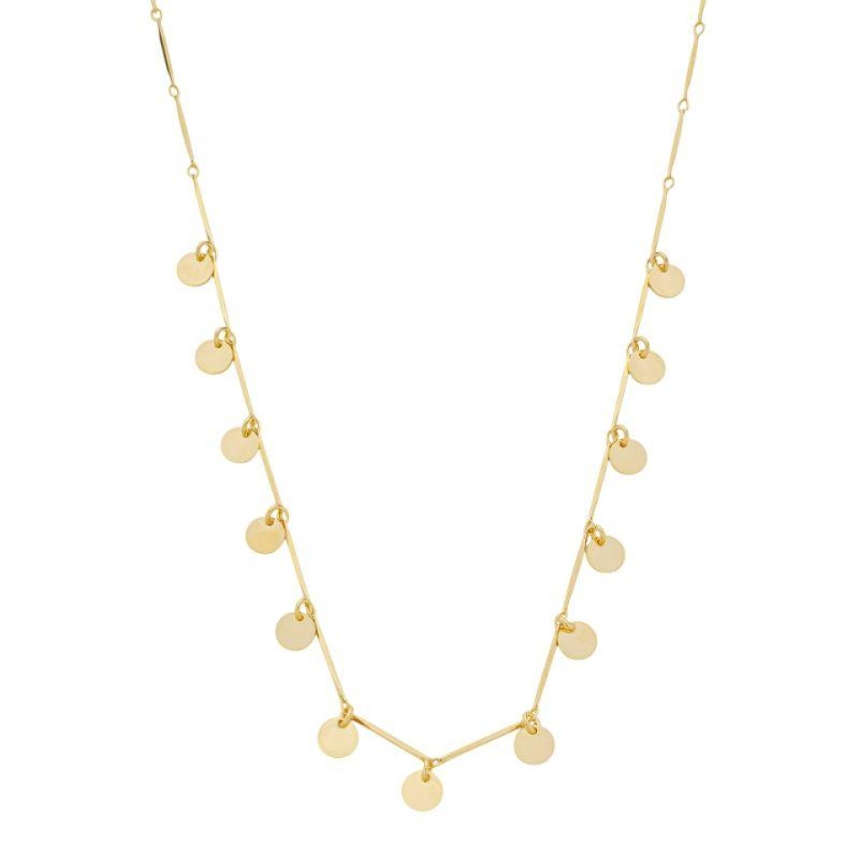 Com design moderno e delicado, este colar combina canutilhos alongados com pequenas medalhas lisas que criam movimento e brilho sutil. A composição em banho de ouro traz sofisticação à peça, perfeita para usar sozinha ou compor com outros colares. Ideal para quem busca um acessório leve, versátil e cheio de charme.