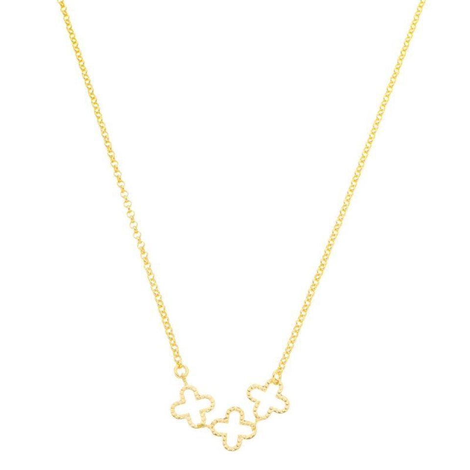 Charmoso e cheio de significado, o Colar Choker Trio Trevos em banho de ouro traz três delicados trevos alinhados, representando sorte, esperança e boas vibrações. Com brilho sutil e design contemporâneo, é uma peça que valoriza o colo e combina com diferentes estilos e ocasiões.