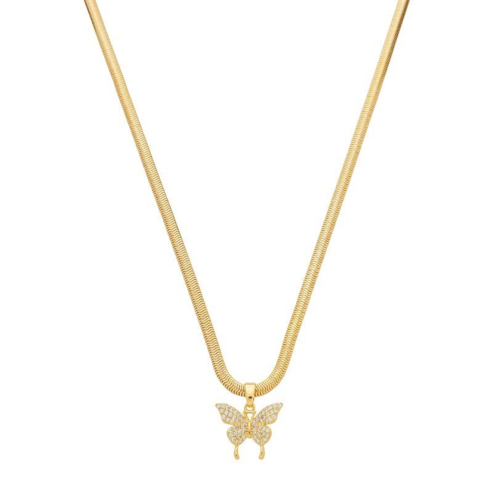 Colar Malha Borboleta Zircônias Ouro