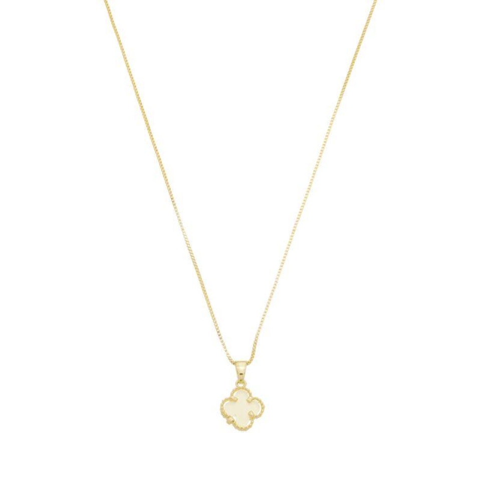 Colar Trevo Pérola Ouro
