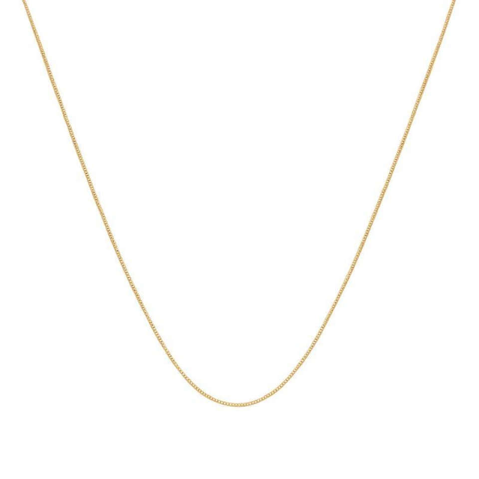 Colar masculino banhado a ouro 18k, com 60 cm de comprimento e corrente estilo veneziana padrão, caracterizada por elos quadrados e bem alinhados.