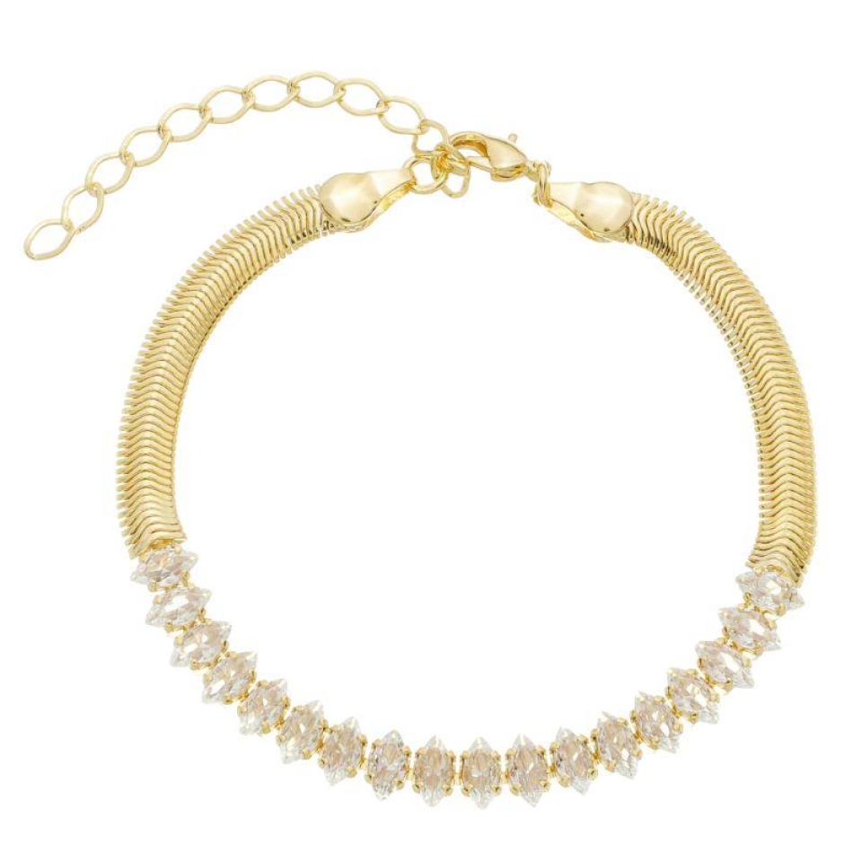 Pulseira Malha e Riviera Cristal Ouro