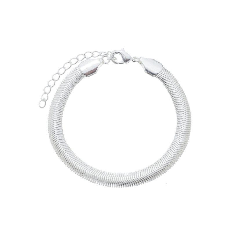 A Pulseira Malha G Prata traz um design robusto que destacam o pulso com elegância e atitude. Seu acabamento prateado de alto brilho garante um visual sofisticado, ideal para compor desde produções casuais até looks mais ousados.